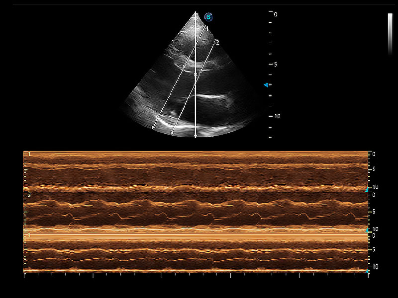 通过360度任意调节3条M型取样线,在同一心动周期上观察心脏不同位置的运动曲线,得到准确的心功能测量数据,有效评估心肌运动及左心室功能。