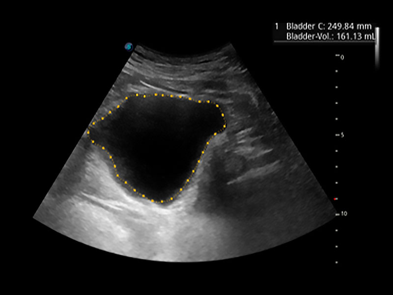 一键自动识别膀胱壁及自动测量膀胱容积,不受膀胱形状和大小的限制,帮助医生快速精准获得测量的数据。