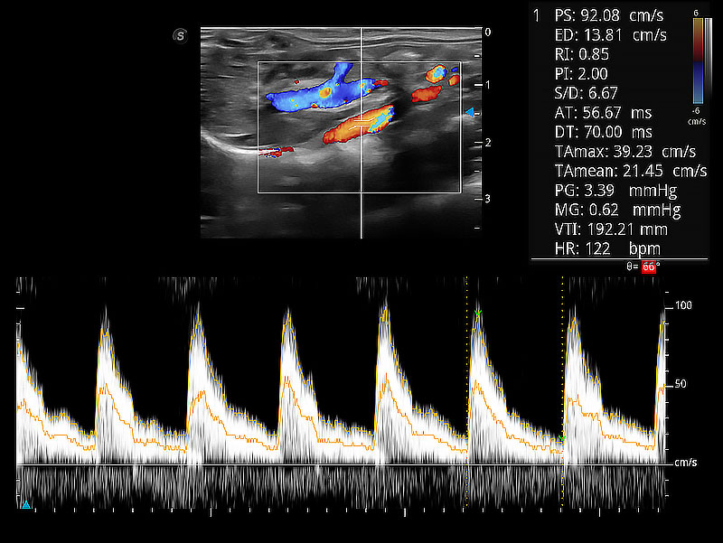 极大提升超低速微细血流的检出能力,同时更精准地滤除软组织和超声信号,为兽用医生提供以往无法通过常规血流获得的疾病诊断信息。