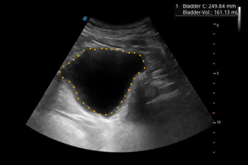 一键自动识别膀胱壁及自动测量膀胱容积,不受膀胱形状和大小的限制,帮助医生快速精准获得测量的数据。