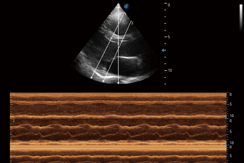 通过360度任意调节3条M型取样线,在同一心动周期上观察心脏不同位置的运动曲线,得到准确的心功能测量数据,有效评估心肌运动及左心室功能。