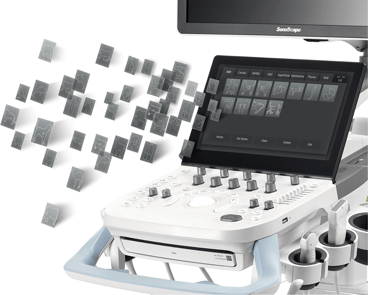 ProPet 60 作为一款高端台式动物超声设备,为动物医生的日常诊断提供了一系列贴合动物临床需求、解决临床实际问题的高级成像功能。凭借全系列高清探头,满足医生对腹部、心脏、生殖、浅表、肌骨等成像的所有需求,切实帮助您提升检查效率,提高诊断信心。